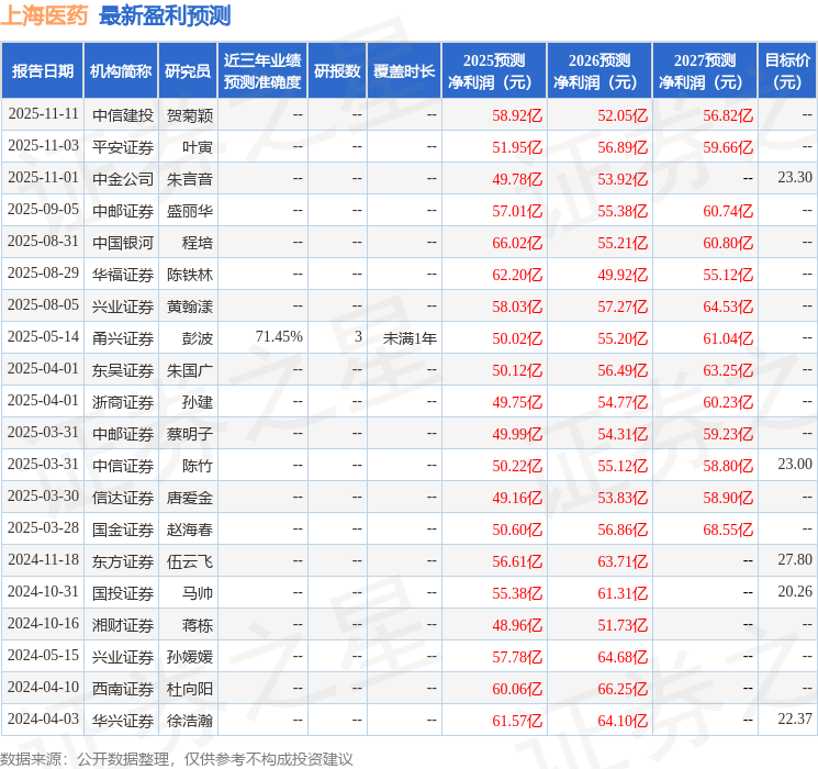 最新盈利預(yù)測(cè)明細(xì)如下: