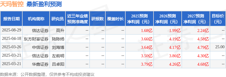 最新盈利預(yù)測(cè)明細(xì)如下: