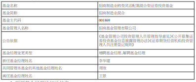中國經(jīng)濟網(wǎng)北京1月15日訊今日,招商基金公告,招商制造業(yè)混合增聘李華建,王景離任。