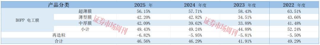 嘉德利2024年的BOPP電工膜毛利率同比上升了4.35個百分點,原因是“2024年國際油價和海運價格企穩(wěn),BOPP 電工膜平均售價趨于穩(wěn)定;主要原材料聚丙烯樹脂平均采購價格下降,產(chǎn)品生產(chǎn)領(lǐng)用原材料成本降低?!?025年,嘉德利的BOPP 電工膜毛利率與2024年基本相當(dāng)。