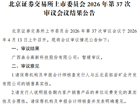 北交所上市委審議會議結(jié)果公告