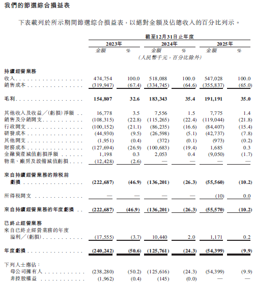 招股書(shū)顯示,公司來(lái)自持續(xù)經(jīng)營(yíng)業(yè)務(wù)的年度虧損由2023年的人民幣2.227億元減少至2024年的人民幣1.362億元,主要由于毛利增加、行政開(kāi)支及財(cái)務(wù)成本減少以及研發(fā)成本減少所致。公司來(lái)自持續(xù)經(jīng)營(yíng)業(yè)務(wù)的期間虧損進(jìn)一步減少至2025年的人民幣5560萬(wàn)元,主要由于特別股東權(quán)利負(fù)債的應(yīng)計(jì)利息由費(fèi)用轉(zhuǎn)為凈貸項(xiàng)以及與公司阿爾茨海默病試劑盒及相容分析儀相關(guān)的研發(fā)成本增加,導(dǎo)致財(cái)務(wù)成本下降。