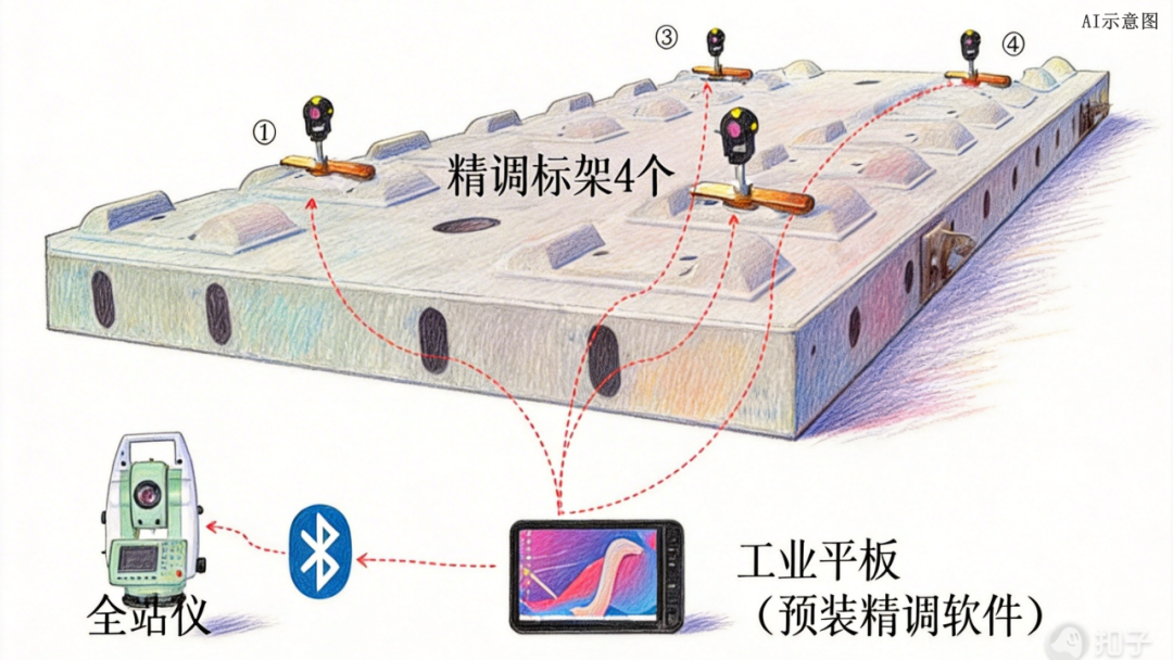 中鐵二院自主研發(fā)的CRTSIII型板精調系統(tǒng)是用于CRTSIII型軌道板精調施工的定位測量系統(tǒng)。采用軌道板螺栓孔定位,通過高精度自動全站儀,測量定位裝置上的反射棱鏡,得到在線路坐標系下軌道板的空間位置,給出將軌道板調整到設計位置的橫向、豎向、縱向偏差和調整量,指導現(xiàn)場人員完成軌道板精調作業(yè),并保存軌道板精調作業(yè)成果。該系統(tǒng)已成功應用于成渝中線、魯南高鐵(885562)、濟萊高鐵(885562)和成貴高鐵(885562)等多個鐵路項目中。