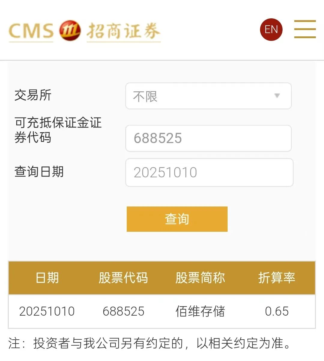 招商證券的官網(wǎng)則顯示,中芯國際可充抵保證金證券折算率由0%上調至70%,而佰維存儲則上調至65%。
